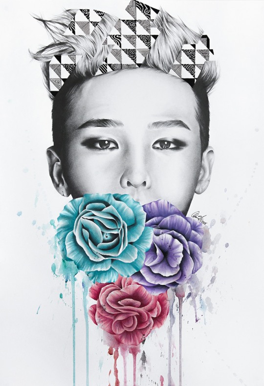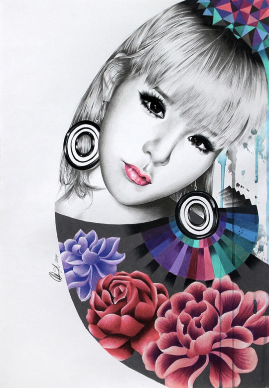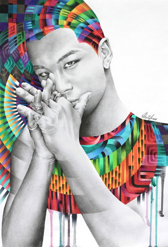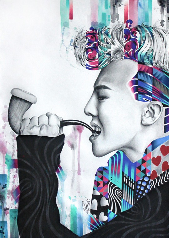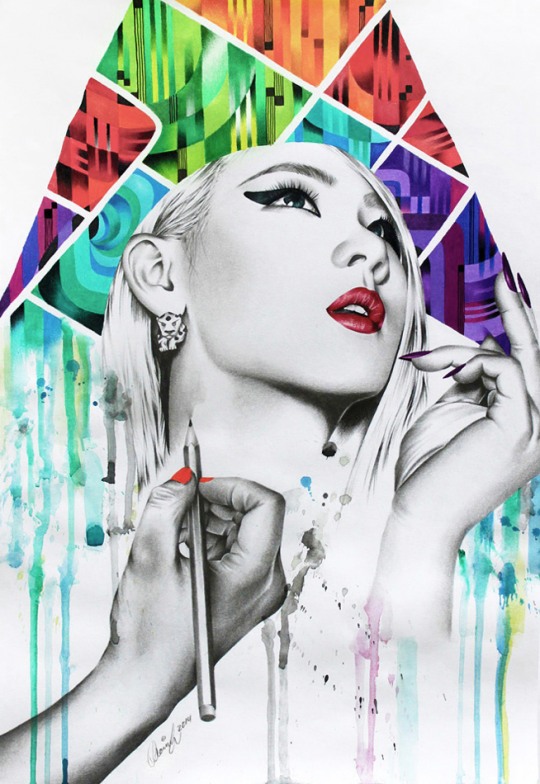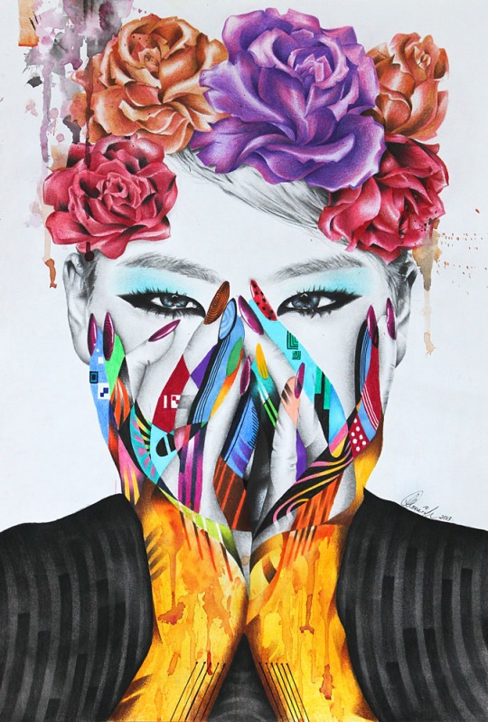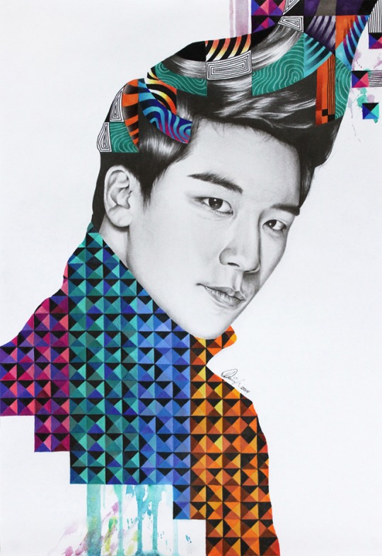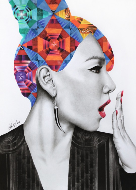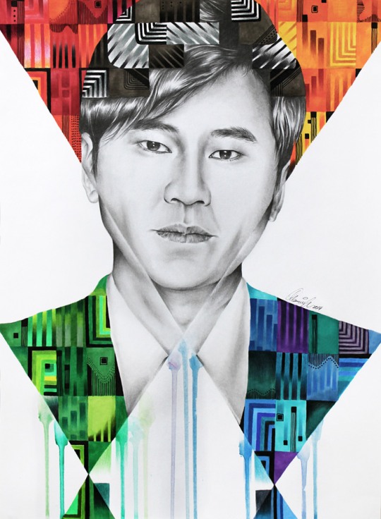 黑白的人物肖像+平面构成的语言+色彩艳丽的元素