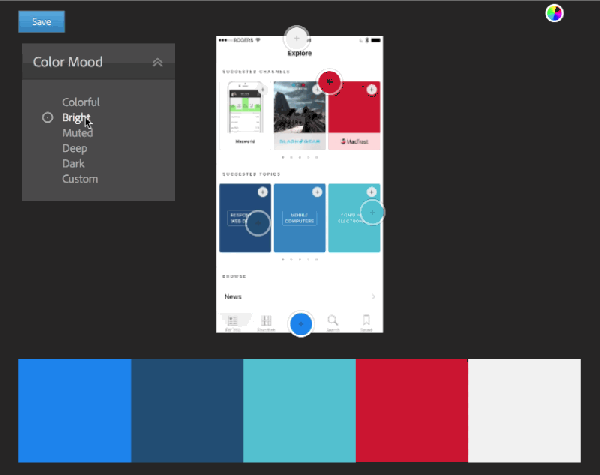 首先滑动色相(Hue)滑块来选择一个主色,然后选择与主色相关的其他单色,邻近色和互补色。最后通过调节这些颜色的饱和度(Saturation)和明度(Brightness)来增加色彩对比和活力。
