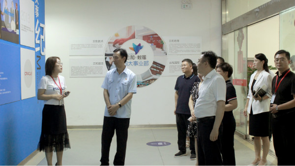 各位领导们来到位于3号楼的云和数据进行详细参观和深入了解,云和数据集团人资行政中心总监韩总向李院长一行介绍了云和数据的创立初衷、公司的发展历程、运营模式、四大事业部、战略规划和所获荣誉资质等情况,并同各位领导一起参观了办公区、技术体验中心和教学区等区域。