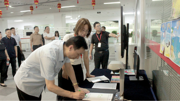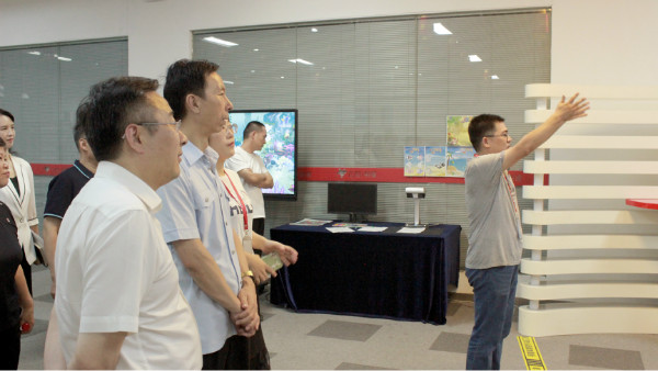 在技术体验中心,韩总向各位领导展示了云和数据自主研发的奇异海、瓷器工坊、虚拟驾考等多项虚拟现实、混合现实、增强现实领域的产品和互动类游戏。李院长一行在体验了云和数据的自研项目后,给予了高度的评价,也对云和数据自主研发的技术实力有了更进一步的了解。