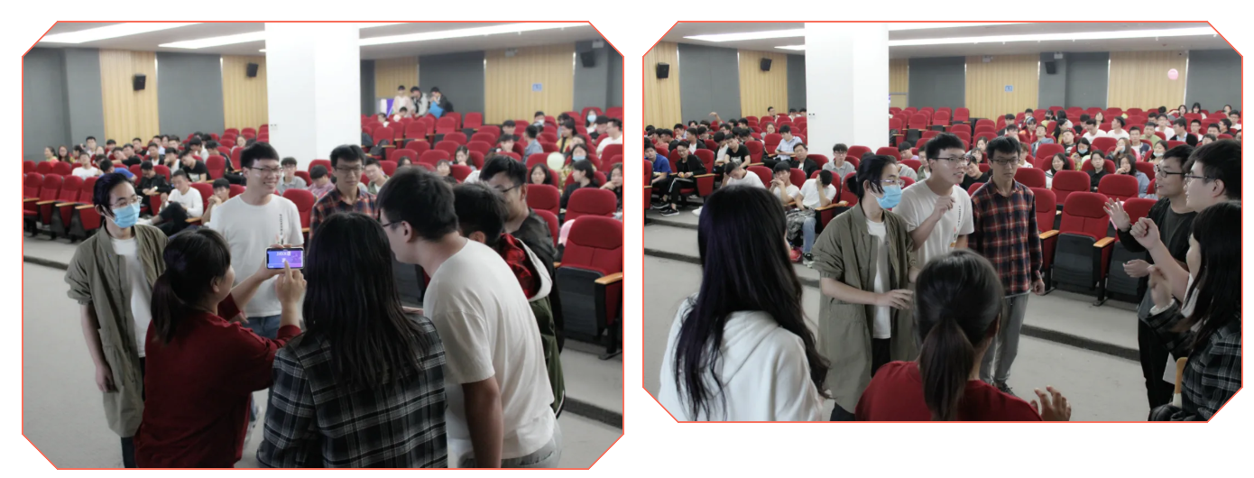 6人一组,站在一张报纸前,裁判喊开始后,3秒内组内所有人把脚放在报纸范围内获胜。