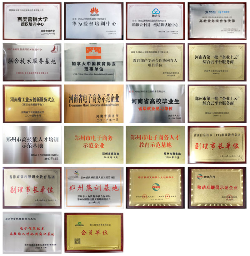 云和数据成立8年,获得了教育部第一批产学合作协同育人项目单位、河南省电子商务示范企业、河南省第一批产教融合型入库培育企业、郑州市电子信息技术高技能人才公共实训基地、郑州市服务外包人才培训机构、第三届郑州市版权协会会员单位、第46届世界技能大赛(云计算方向)省、市两级集训基地、郑州高技能人才培养示范基地、郑州电子商务人才教育示范基地等数十项殊荣。