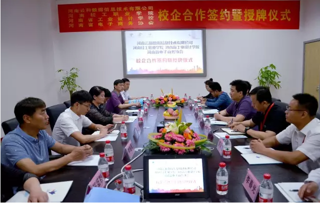 5月15日,河南轻工职业学院河南省工业设计学校金校长一行、河南省电子商务协会郭主任亲临云和数据,举行校企合作签约暨授牌仪式。仪式上分别揭晓了云和数据“电子商务人才培训基地”和河南轻工职业学院、河南省工业设计学校“实习实训基地”两个授牌。