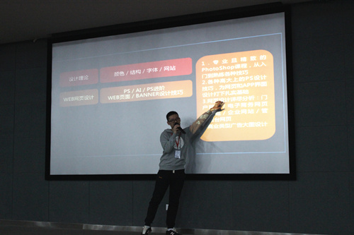 第二个给学生们做技术知识分享的是云和学院UI设计教研组组长可云,学生们对他都不陌生,都抢着跟他打招呼。因为云和数据持续发力于优质校企合作工作,可云老师上周应校方邀请在郑州轻工业学院为软件学院200多名学生们做过连续四天的校园短训,他的教学风格和技术特点得到了学生们的一致认可。