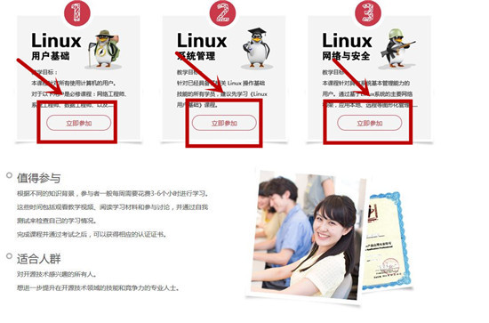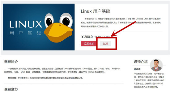 如点击《Linux用户基础》课程下方的“立即参加”,进入下方界面。