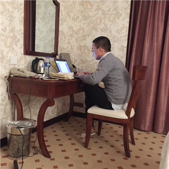 入夜,学员们已经进入了梦乡。徐老大的工作却还没做完,对着电脑,他要对这次的出行信息进行评估汇总,写成书面材料传回学院总部,以便在未来的日子里,学院能够更好地跟踪。时针指向凌晨1点……熬夜对就业指导老师们来说是家常便饭,对徐老大来说,熬夜已成习惯,早起不如杀他。